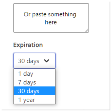文件的过期时间可以选择从 1天 到 1 年(注:官方演示站点只支持 5 分钟)。