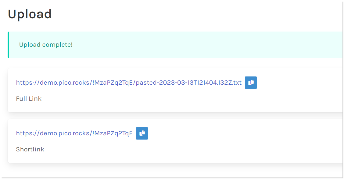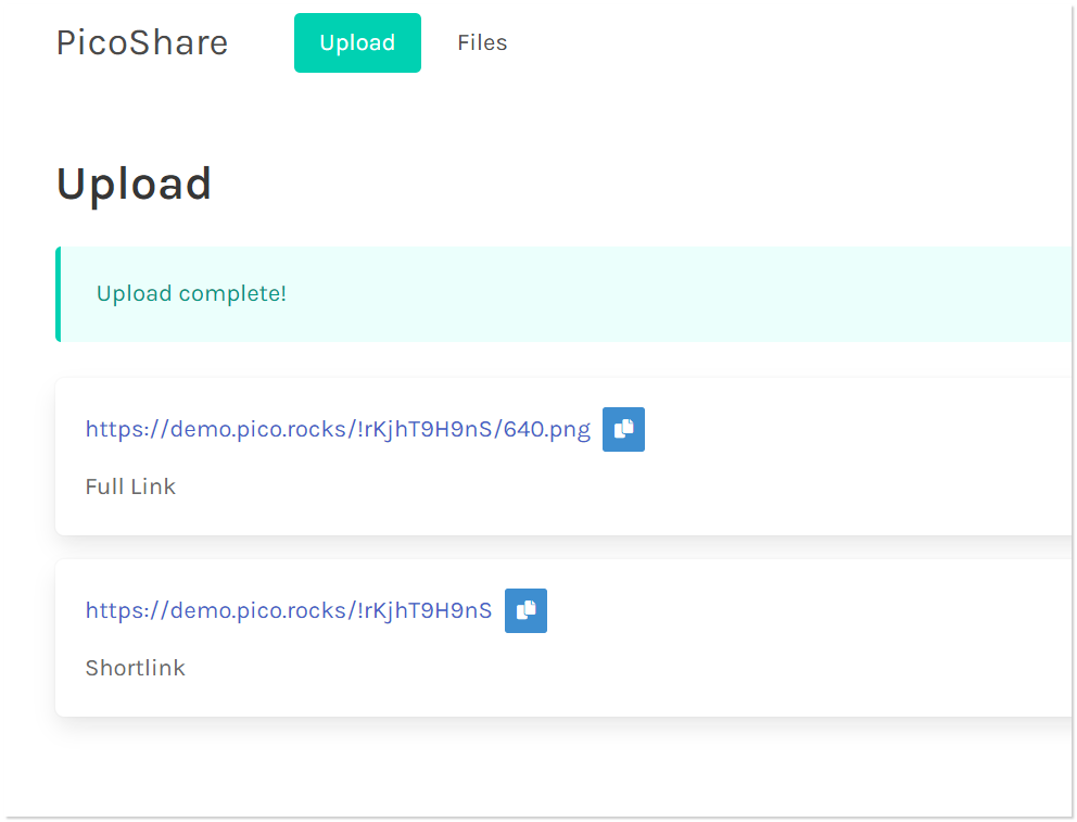 文件上传之后,会同时生成长链接和短链接,方便分享。