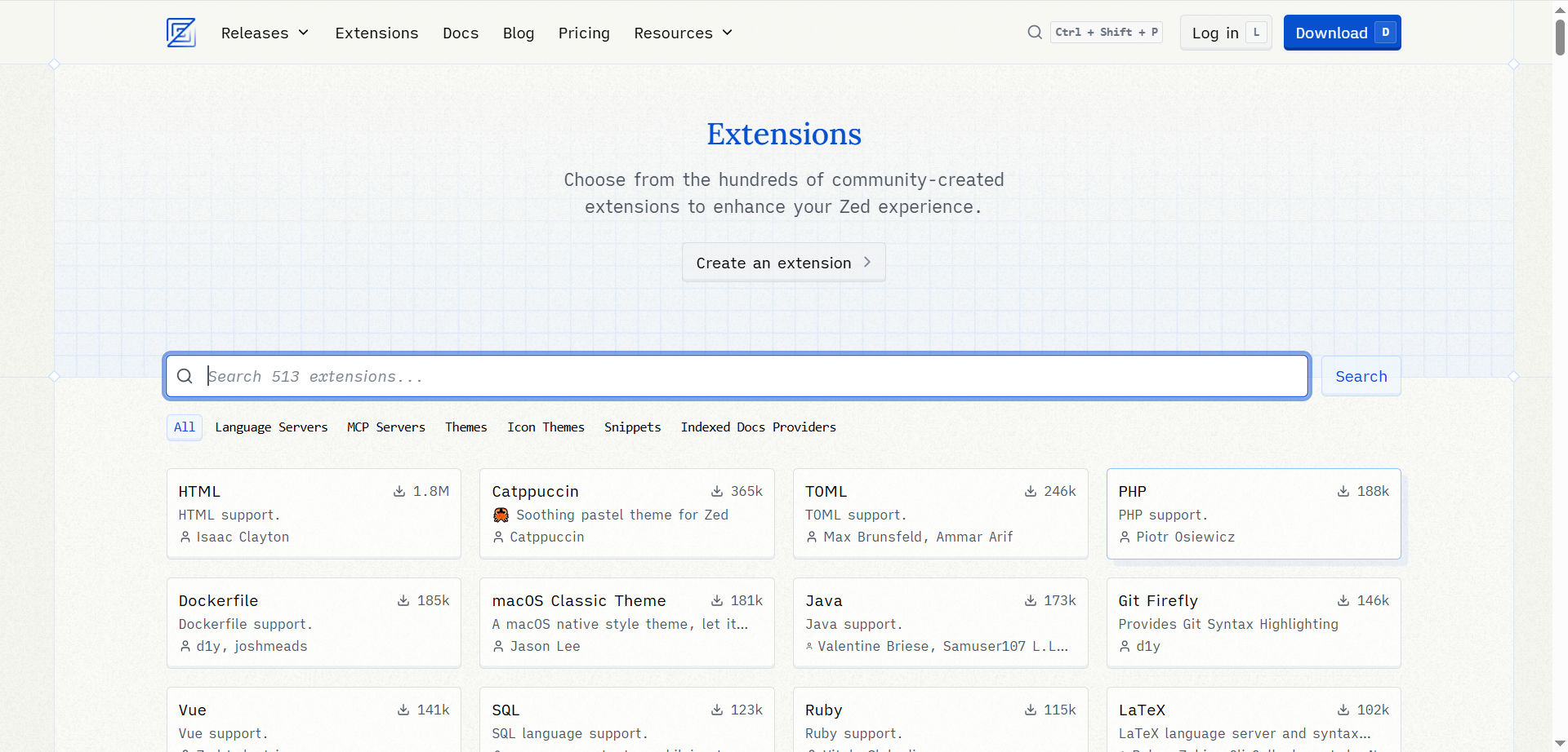 Zed 提供了扩展能力,支持语言、主题等个性化拓展,让开发环境既强大又符合个人习惯。