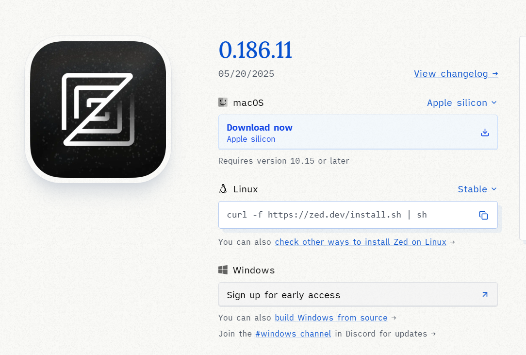 目前 Zed 支持 macOS 和 Linux,Windows 用户需要手动从源码编译。