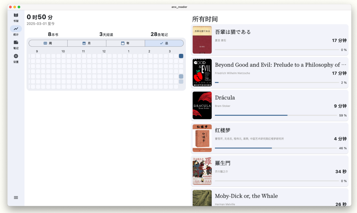 - 专业的阅读追踪:阅读数据统计超详细,周、月、年度报告一目了然,阅读热力图让你清晰看到自己的阅读习惯。