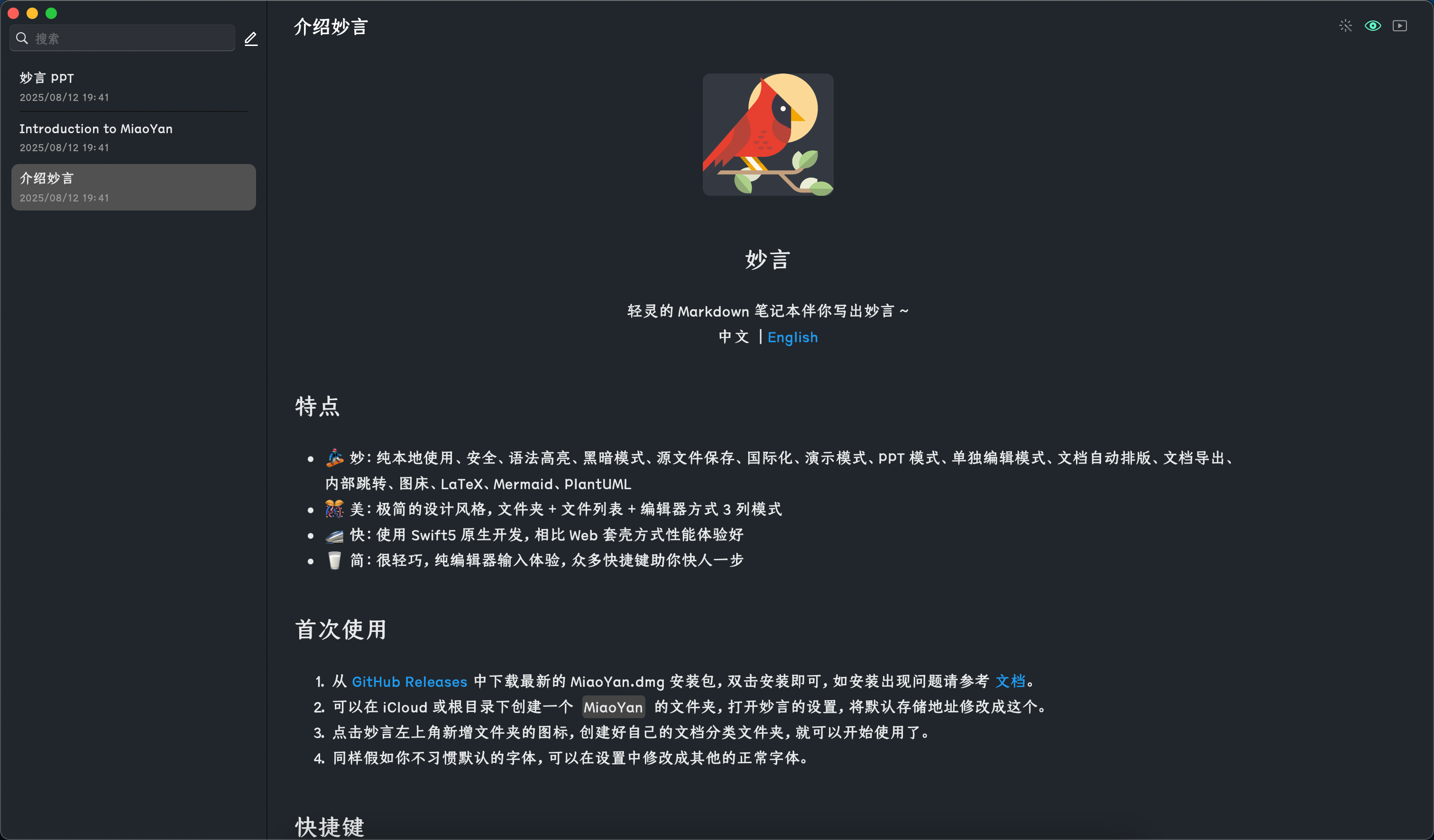 最近我发现了一个非常棒的开源项目——MiaoYan(妙言),它专为写 Markdown 文档设计,能有效解决这些问题,让你在写作与组织内容上更加得心应手。