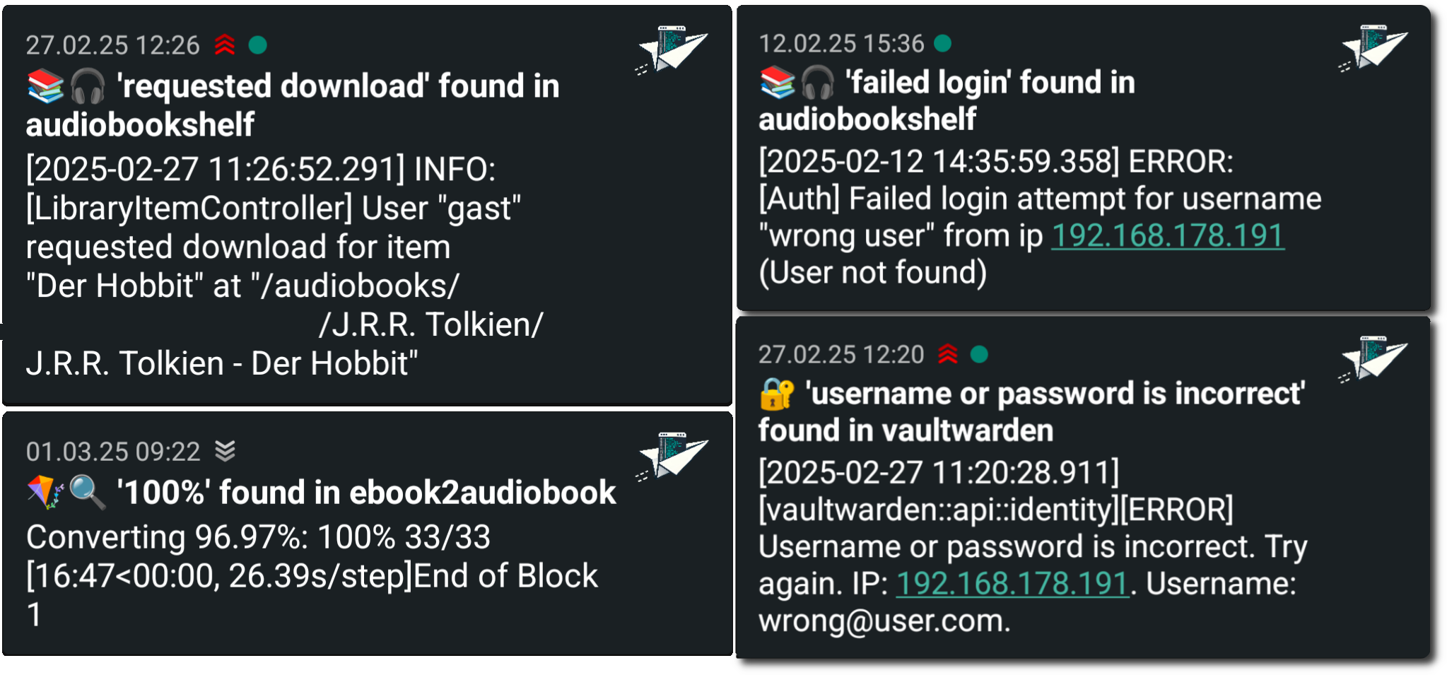 LoggiFly 的特点包括:支持关键字和正则匹配、可将日志片段附加到通知中、自动配置重载、支持远程 Docker 主机、以及跨平台(支持 Docker、Docker Swarm、Podman)。所有这些能力都集中在一个轻量级工具中,没有复杂的日志堆栈依赖,让你快速实现日志监控。